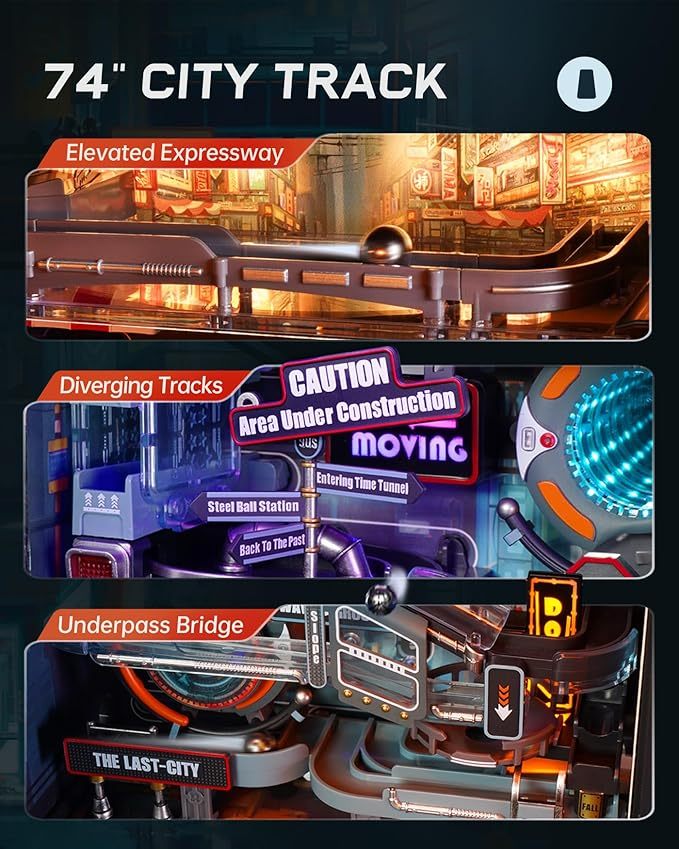 - 【Dual Mode: Rolling & Lighting, Wireless Looping】Inspired by Parallel World and Miniature City, this model kit for adults features an infinite looping operation mode, taking you through immersive scenes like time tunnels, sky bridges, and factories.